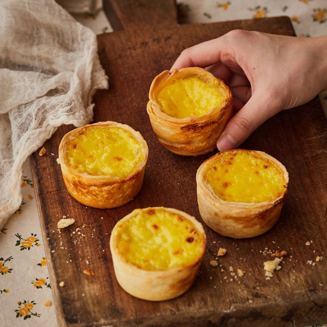 <24개 분량의 재료> 타르트 : 박력분 400g, 버터 280g, 우유 90g, 달걀 60g, 소금 약간 필링 : 우유 290ml, 생크림 290ml, 달걀노른자 8개, 소금 약간, 설탕 100g